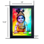 Bal Krishna Religious Photo Frame, Glitter Finish, Black Frame, 25 × 34 cm, Without Glass