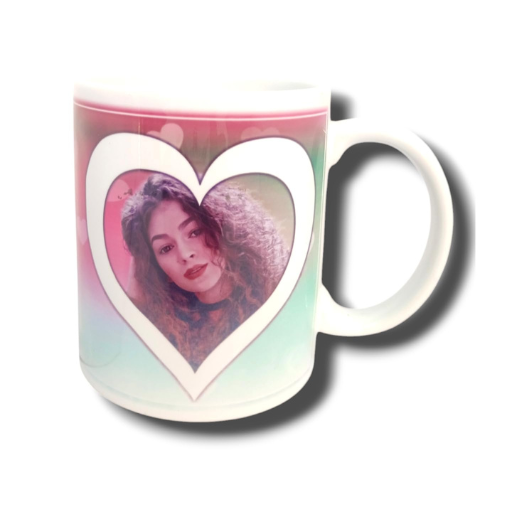 Customized Heart Photo Coffee Mug, I Love You Design, 400ml Ceramic White Cup